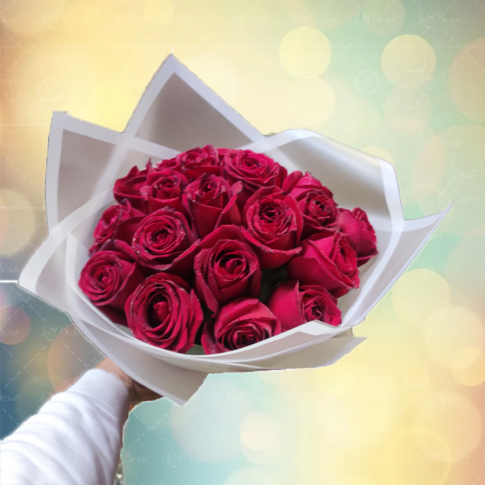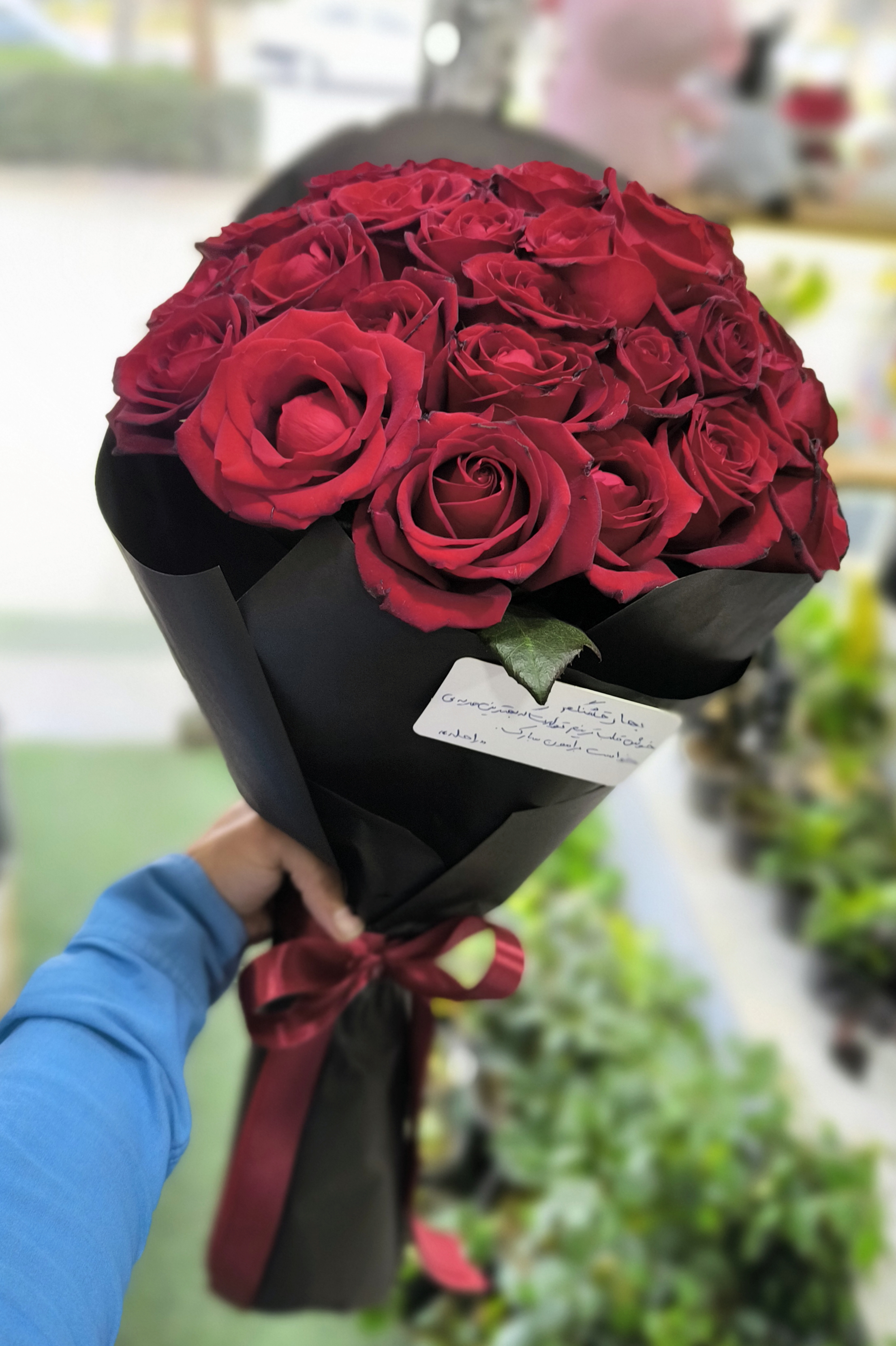 دسته گل رز هلندی قرمز ۲۰ شاخه