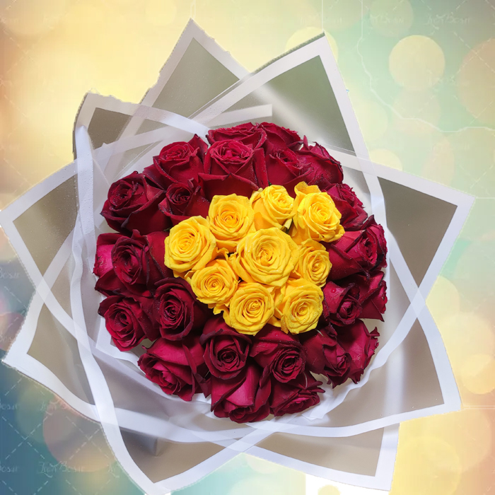 دسته گل رز ۲ رنگ ۳۵ شاخه